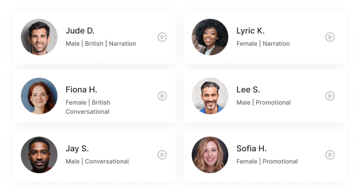 Select from over 70 conversational, narration and promotional voice options in Storyline's library to bring your AI-powered episodes to life with the ideal tone, accent, speed and expression.